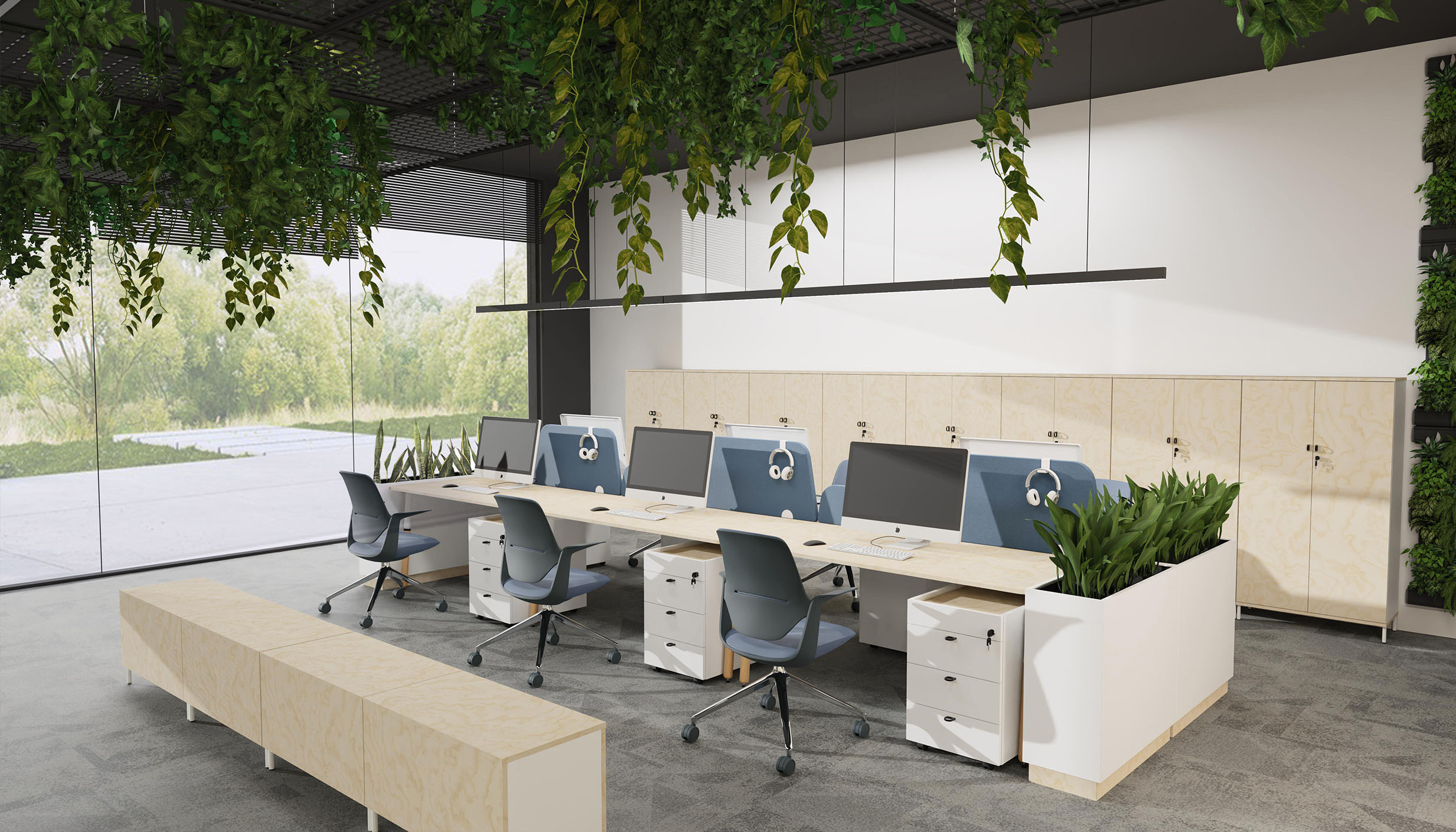 W skład kolekcji wchodzą również szafy aktowe, regały, szafy ubraniowe oraz szafki typu lockers. Plecy szaf zostały wykonane z płyty laminowanej, co umożliwia ich zastosowanie jako ścianek działowych. Dzięki temu meble te mogą być elastycznie dostosowane do różnych aranżacji przestrzennych, tworząc funkcjonalne i estetyczne rozwiązania w każdym biurze.